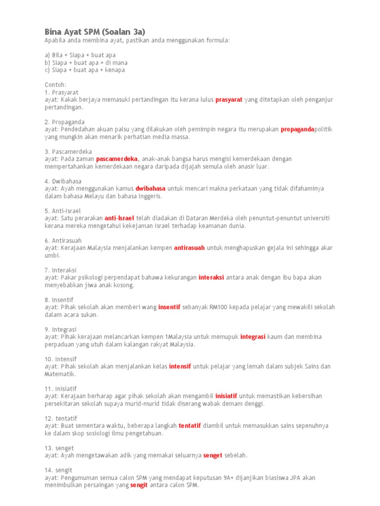 -komitmen menyeluruh agensi yang terlibat. BAB tu bermaksud Before After. Bina Ayat Spm Pdf Beragam contoh kegiatan propaganda yang pernah dilakukan antara lain.